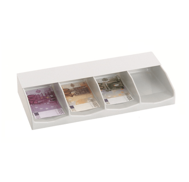 mit 4 Einzelfächern für Geldscheine. Kompaktes Design für einfache Handhabung und Lagerung. Robuste Konstruktion für langlebigen Einsatz. Vielseitig einsetzbar in verschiedenen Geschäftsumgebungen. Die 4 Banknotenfächer besitzen eine Abdeckung.
