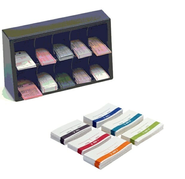 In den Banderolen-Behältern BB 30/10 werden Geldschein-Banderolen oder Lochkarten-Schlüssel (Key Cards) stehend oder liegend