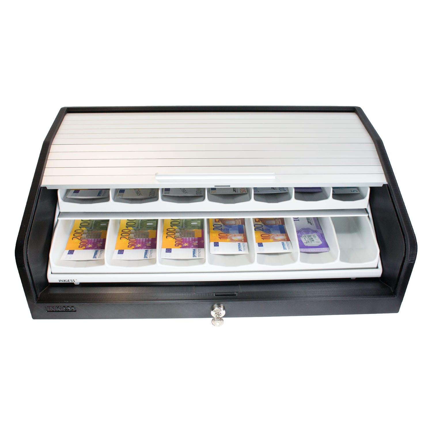 Optimieren Sie Ihren Kassenbereich mit der INKIESS EUROKORD Rolljalousiekasse 7700 PLA/R. Diese Kasse vereint jahrzehntelange Markenqualität mit moderner Nachhaltigkeit und maximaler Effizienz am Point of Sale.