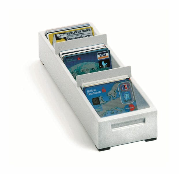 Schlüsselkarten (Key-Cards). 2 individuell steckbare Trennwände zur Einteilung nach dem gewünschten Ordnungsprinzip.