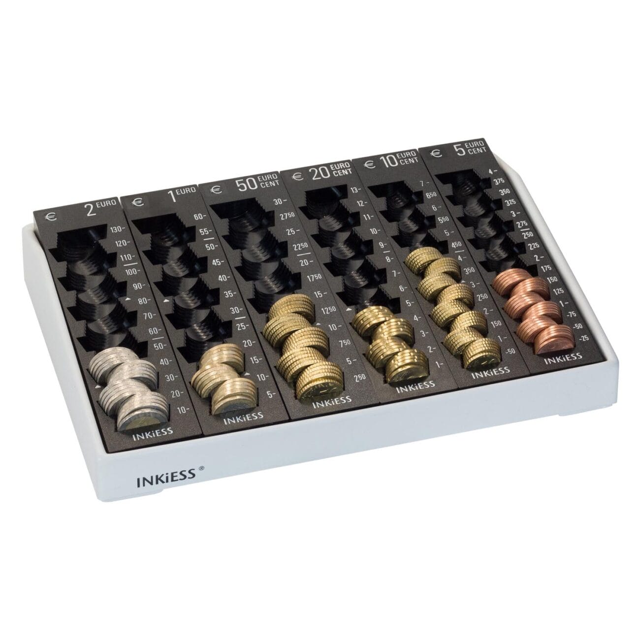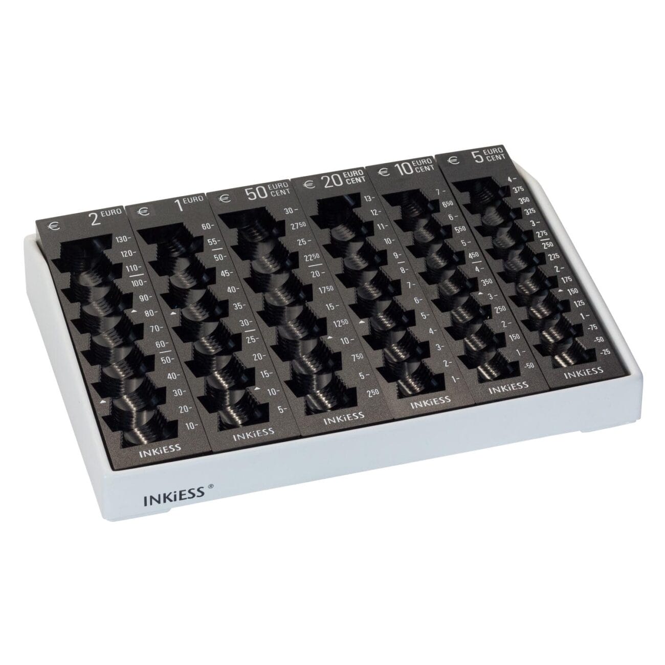 Ausstattung: 6 Einzelmünzbehälter von 2 EURO - 5 Cent inkl. Untertersatz