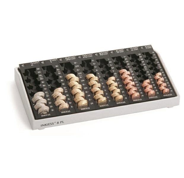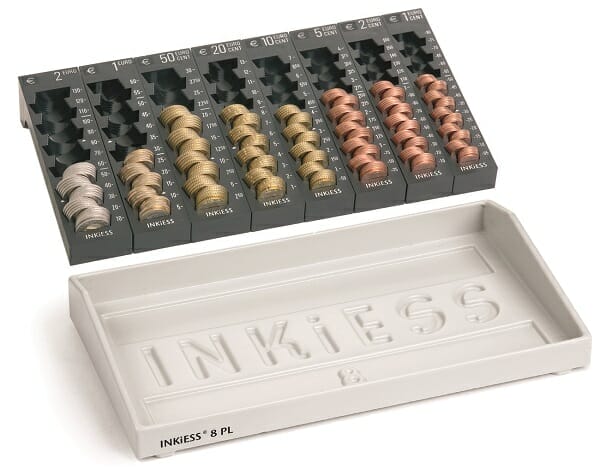 INKiESS Grundmodell REKORD Geldzählkasse 8 PL nur für Münzgeld mit 8 herausnehmbaren Einzelmünzbehältern von 2 EURO bis 1 Cent.