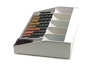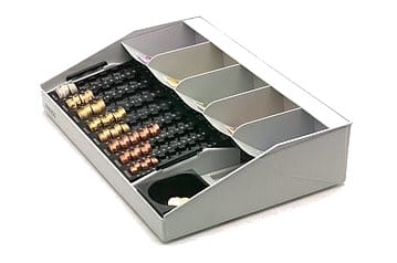Ausstattung: 8 Einzelmünzbehältern von 2 EURO bis 1 Cent im Untersatz mit Griffen